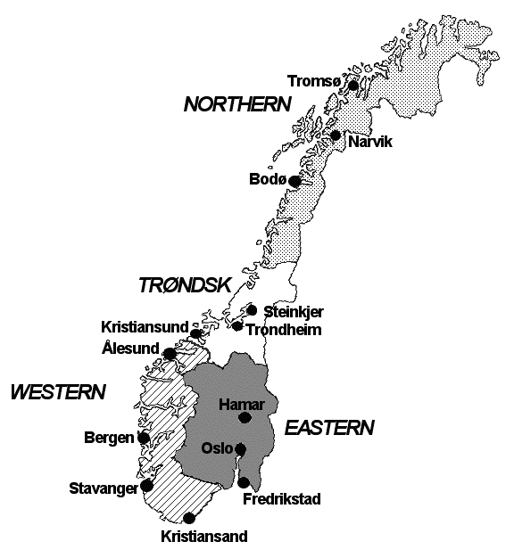 | Western | Western Northern | Bergen, Stavanger, Kristiansand Tromsø, Narvik, Bodø |